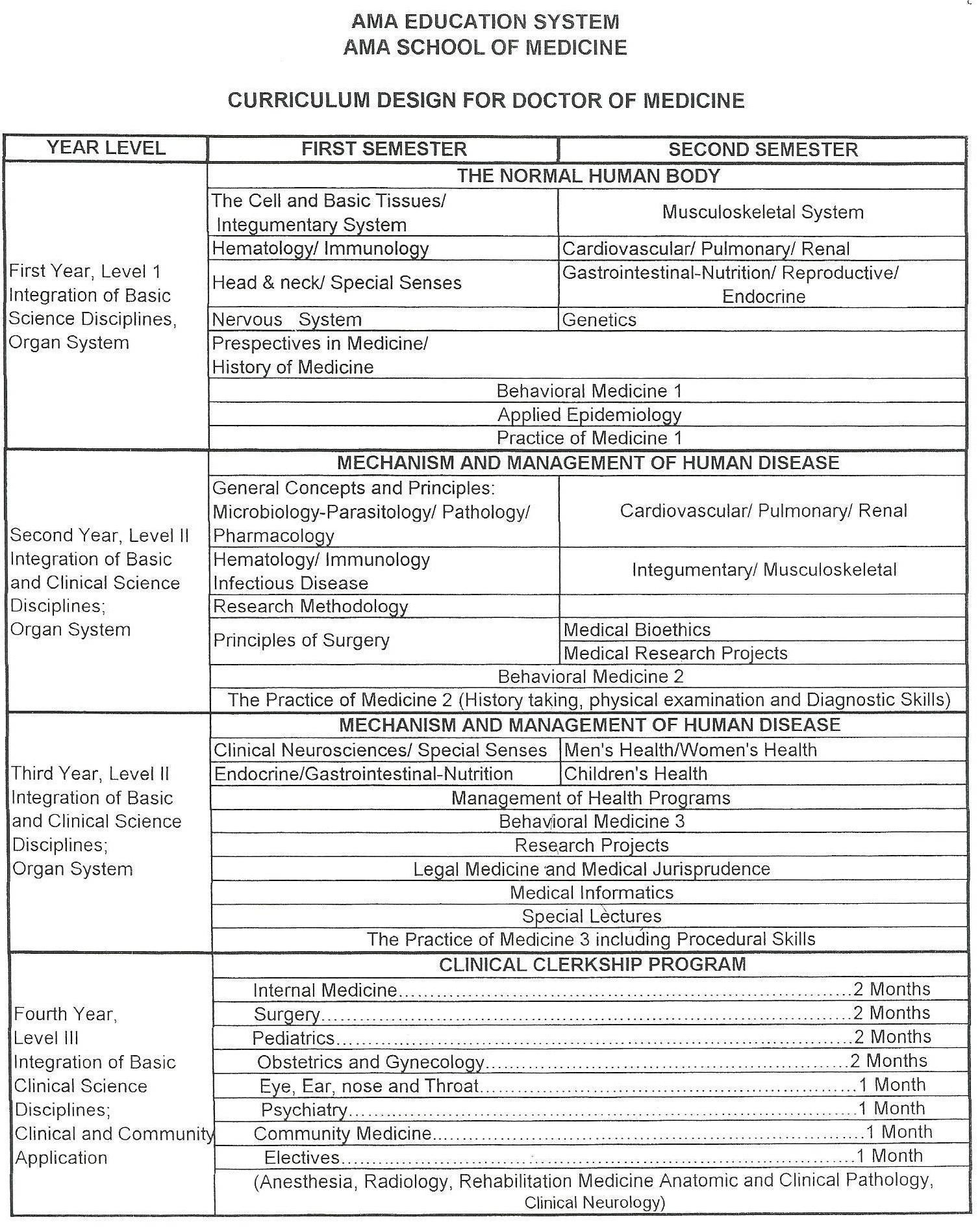 The four-year curriculum equips the students with clinical reasoning, problem-solving and critical thinking skills with an emphasis on interdisciplinary and life-long learning. The first three years provide the students with an integrated understanding of the basic and clinical sciences in the classroom and community settings. The fourth year of the curriculum is devoted to the application of the basic and clinical concepts in actual clinical and community settings.